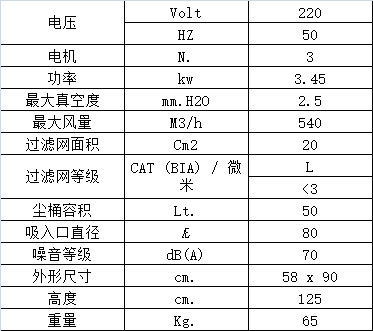 星形聚酯纤维过滤网装在钢制过滤舱中,过滤面积20000 cm2,过滤精度 高达3微米 L级别。手动振尘器通过上下垂直摇动能够振落附着在滤网上的大部分灰尘,有效清洁过滤网从而保持正常的吸尘功效和延长滤网使用寿命。模压铝制吸尘口直径为Ø80 mm,位于过滤网下面,能够同时吸尘、吸固体,无需更换或取出过滤网。